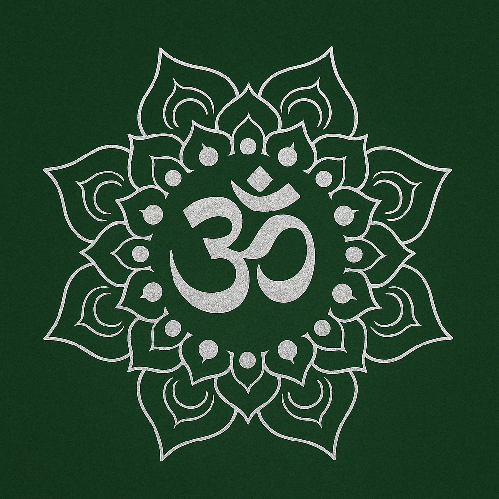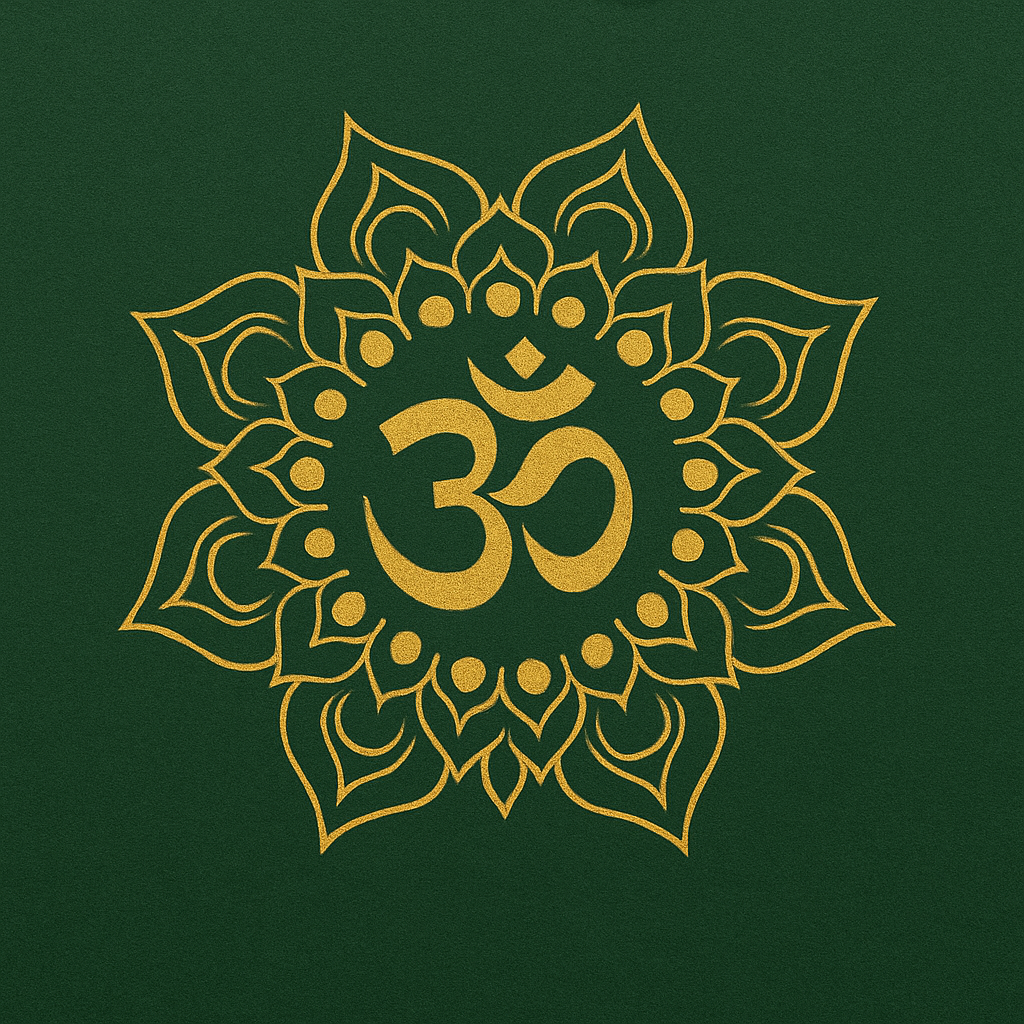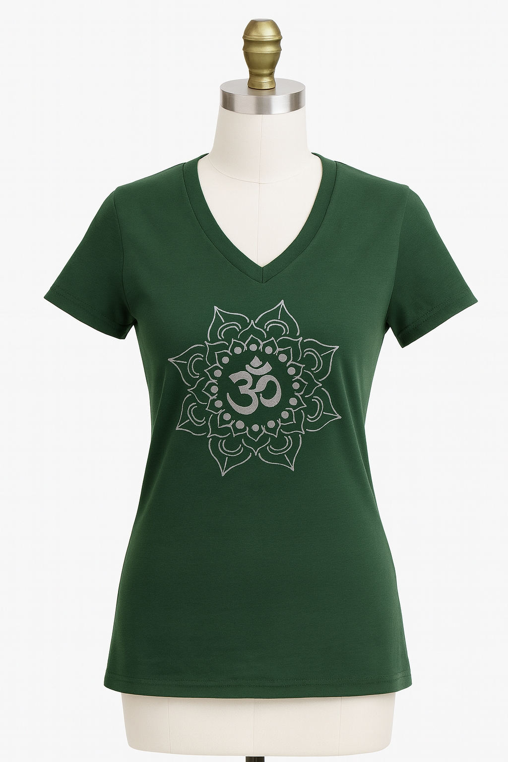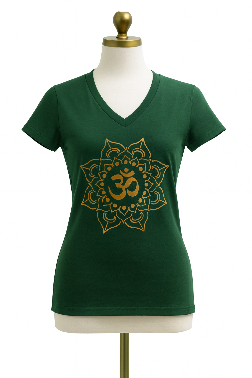 V neck short sleeve T shirt with Om design in metallic Gold or Silver.