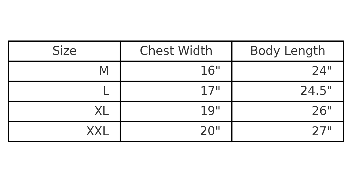 | SIZE | Medium, Large, XL, XXL |